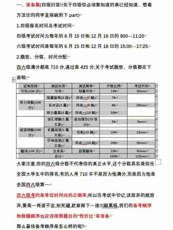 3考试需要带身份证和准考证,准考证有些学校会帮忙同意打印,然后班上发给报名四级的同学,也可以自己在报名网站打印4另外千万不要忘记考试带听力耳机,提前准备好两节电池,以防耳机电池出问题英语四级主要考作文。
