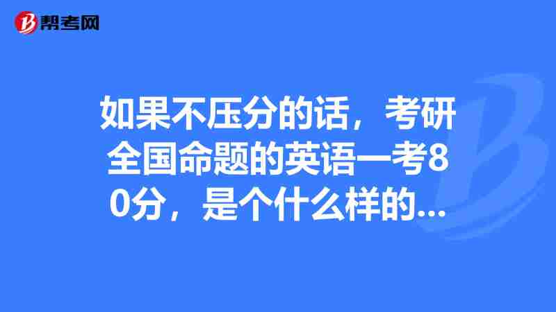 考研英语80分是高分,是很不错的水平英语能考80分自然是和不懈的努力和科学的方法分不开的考研是一场排位赛,不在于你的分数有多高,而取决于你的专业成绩在你报考院校专业的排名怎么样所以,考研英语只要能达到70+80+,其实就已经远超很大一部分考研党了;考研英语80分是个很不错的成绩,是高分英语能考80分自然是和不懈的努力和科学的方法分不开的,考生一定要认真备考,才能考出好成绩专业老师在线权威答疑。