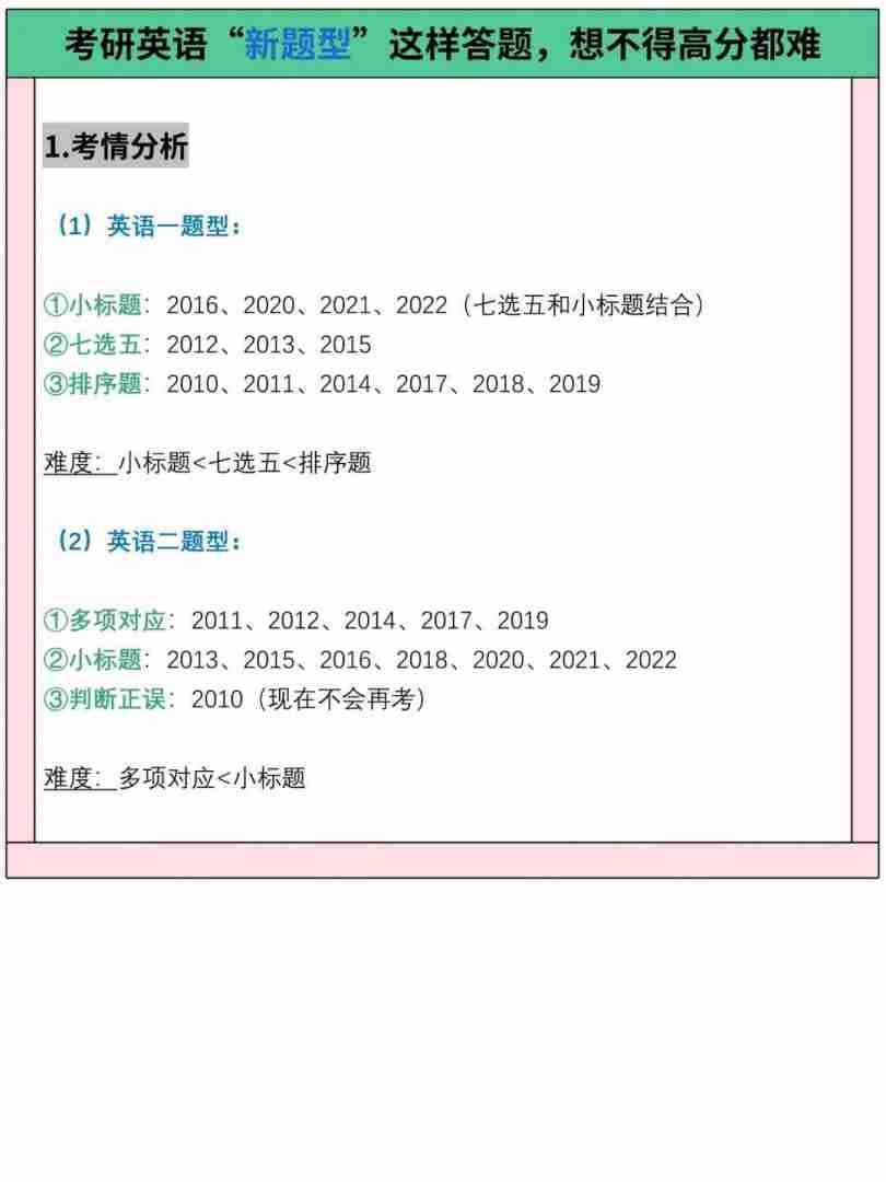 当然我们不能一直做英语一的真题。暑期之后,大家就要开始回归到英语二的真题,首先要掌握英语二的题型特点,之后就开始做题和分析。如果前期有了英语一真题的积累经验,那么再做英语二的真题你就会发现so easy。