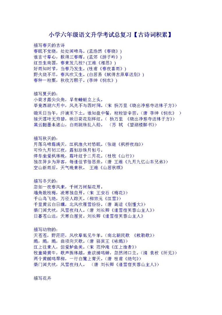 2001年试行的小学语文新课程标准提出第一学段背诵优秀诗文50篇段,第二学段为50篇段,第三学段为60篇段而且在其附录的“古诗词背诵推 荐篇目”就有70首由此可见,新课程标准肯定和提高了小学古诗词教学的。