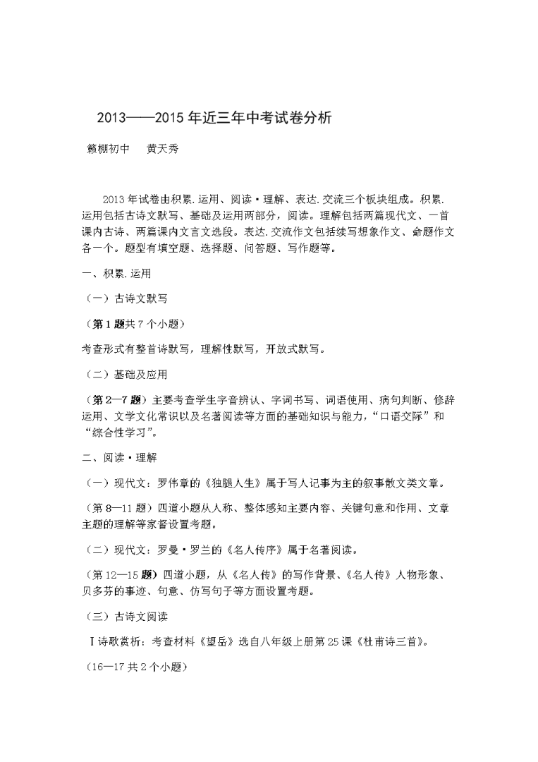 6、上面对学生答题情况分析知识的内容讲解,同学们都能很好的阅读了吧,希望上面的内容给同学们的学习很好的帮助 篇三初中语文试卷之试题分析 试题分析 此次命题坚持有利于激发学生学习积极性,有利于促进教师教学观念和学生学习方式的转变。