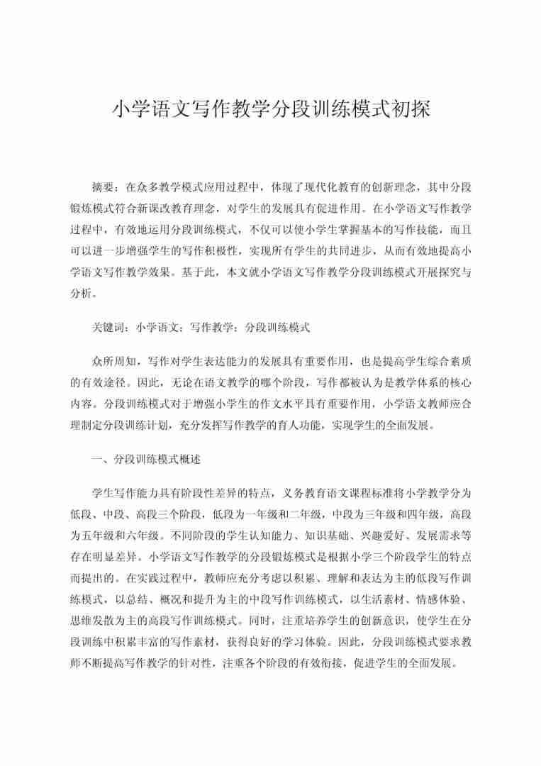 #一年级# 导语教学论文是教师教学经验和教学研究成果在写作上的表现,简单的说,就是教师将平时教学中的一些经验或研究进行了总结,并综合运用综合理论知识进行分析和讨论以下是 整理的小学一年级语文教学论文范文,希望帮助到您 语文阅读教学策略探究 摘要为了让学生养成良好的阅读习惯, 拓展其视野。