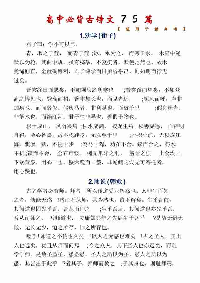 3高中语文64篇必背古诗文 初中部分40篇 1孔子语录论语 2鱼我所欲也孟子 3生于忧患,死于安乐孟子 4曹刿论战左传 5邹忌讽齐王纳谏战国策 6出师表诸葛亮 7桃花源记陶渊明 8三峡郦道元 9杂说。