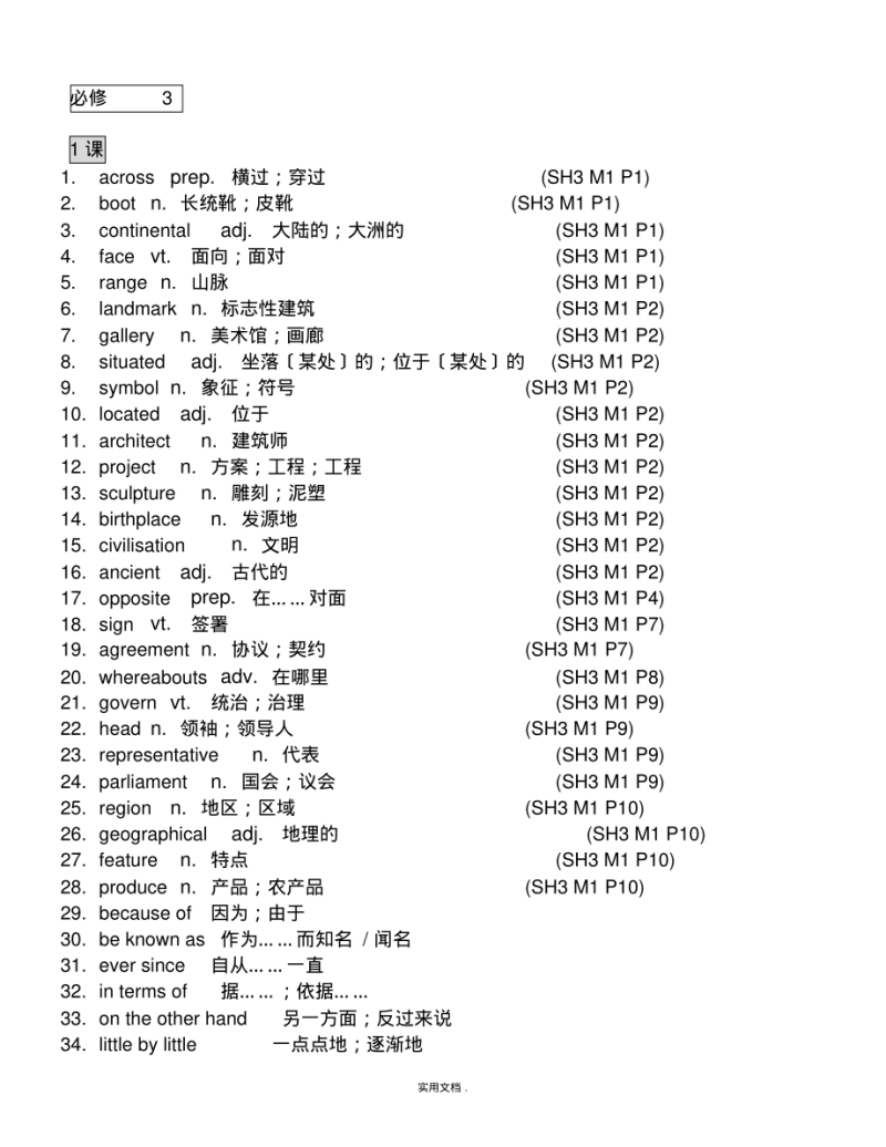 1、只有总词汇表才是按字母顺序排列的,而每个单元的词汇表是乱序的,一般是按单词出现的先后顺序排列的高中英语人教版必修一第一单元单词表如下;Unit 1 Disneyland n 迪斯尼乐园 castle n 城堡 the Sleeping Beauty 睡美人城堡 ahead adv 在前向前 yard n 码 bear n 熊 Bear Country 熊国 horsedrawn 用马拉的 streetcar 市内有轨电车 tower n 塔 the Tomorrow Land Building 未来国大厦 men’s room 男厕所 sign n 符号标记 ΔWalt;20140112 人教版高中英语选修6完整单词表 12 20140713 高中英语选修6单词表 4 20131028 人教版高中英语新课标必修5和选修6单词表 20171216 人教版高中英语选修6单词表? 4 20130413 人教版高中英语选修6单词表 请看好!我想要的是最后一个单 20131206 人教版高中英语选修六听;点击 jtjdzkb8st08_7htm打开后, 如图所示,点击quot下一页quot往后翻,点击quot上一页quot前后翻,以此来查看全册书的单词表高中英语人教版必修4单词表jtjdzkb8xt15_4htm。