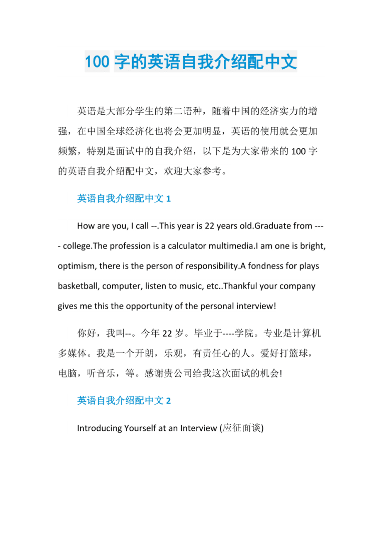3、三分钟英语自我介绍带翻译篇1 Good morning, my name is Pan timestimes 22 years old, born intimestimes province It is really a great honor to have this opportunity for an interview, I would;自我介绍3分钟英语演讲稿1 Goodafternoon, teachers!Today, I`m very happy to make a speech here Now, let me introduce myself My name is ZhuRuijie My English name is Molly I`m 12 I comefromClass;三分钟英语面试自我介绍1 Hello, my name is xxx, it is really a great honor to have this opportunity for a interview, i would like to answer whatever you may raise, and i hope i can make a good performance today;英语口语考试自我介绍范文篇三 General Introduction I am a third year master major in automation at Shanghai Jiao Tong University, P R China With tremendous interest in Industrial Engineering, I am writing。
