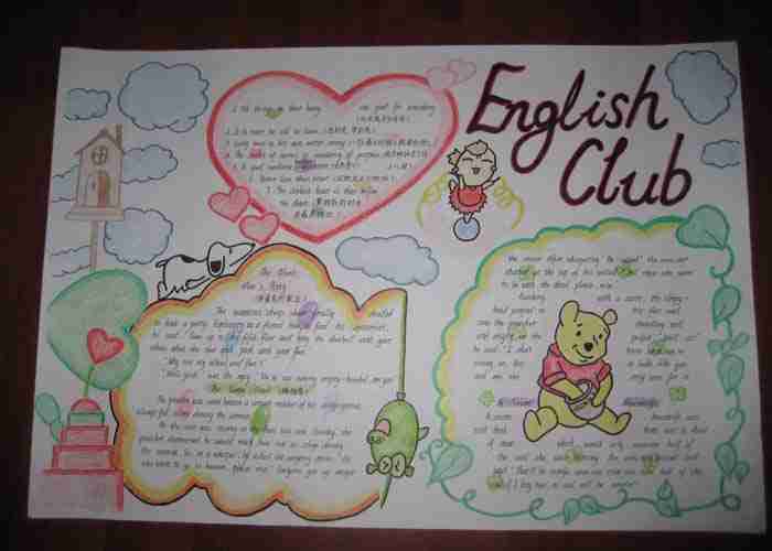 英语手抄报内容如下1中国位于亚洲东部太平洋西岸,它的版图被形象地比作雄鸡,是中华民族的主要聚居地China is located in eastern Asia, the Pacific West Bank, and its layout is vividly likened to cock The;1英语的手抄报内容11道歉 Apologize 2I have a friend, her name is Lucy, I knew her when I was 4, she is my best friend Sometimes we will argue for something, of us want to say;And gladly would learn , and gladly teach Chaucer , British poet勤于学习的人才能乐意施教英国诗人, 乔叟Better be unborn than untaught , for ignorance is the root of misfortune Plato , Ancient;春节英语手抄报内容50字如下Spring Festival is a traditional festival in China and some Asian nations Because legend has it that the beast is afraid of red, afraidof fire and afraid of sound, so people;导语Happiness is form courage 幸福是勇气的一种形式下面是由我为你整理的英语手抄报简单内容,欢迎大家阅读Activity is the only road to knowledge George Bernard Shaw , British dramatist行动是通往知识的唯一;英语手抄报的英文内容如下1In the new year, l wish you every success in your career Realize one#39s ambition! Prosperous financial resources! Good life is safe!新的一年,祝福你事业蒸蒸日上,前途无量。