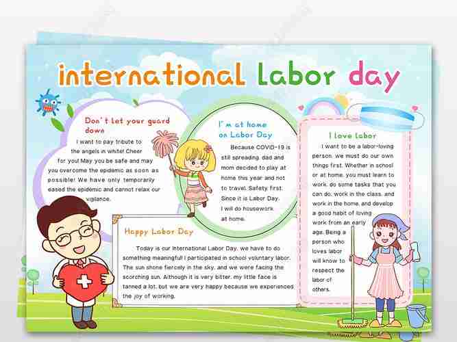 6、五一劳动节英语手抄报内容带翻译如下Labor Day A Celebration of Hard Work and Dedication 五一劳动节,又称为国际劳动节或五一国际劳动节,是全世界劳动人民共同庆祝的节日这个节日起源于19世纪末的美国,当时工人们为了争取八小时工作制和更好的工作条件,进行了大规模的罢工和示威如今,五一劳动。