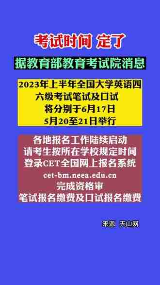 报名方式:考生登录全国大学英语四、六级考试网站(www.cet.edu.cn),点击“CET口试报名”栏目完成信息填报、选择考点、网上缴费等报名手续。考试费为50元。考生也可以安装“CET”手机APP完成报名。