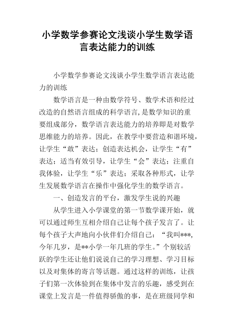 4、小学数学应用小论文篇一 摘要 数学应用意识是我们对于客观物质世界中存在的数学知识应用的反映数学教学生活化是国际数学教育发展趋势, “现实数学”的思想充分说明了数学来源于生活,也必须扎根于现实,并且应用于现实,数学教育如果脱离了那。