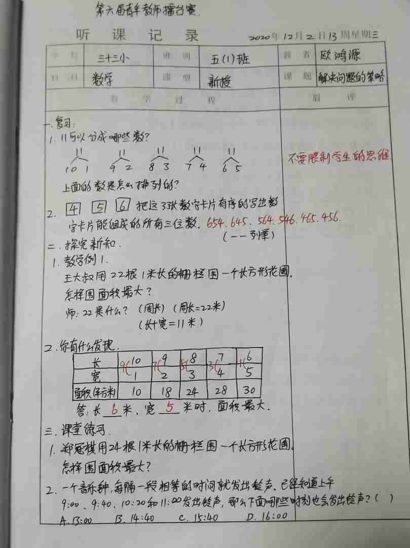小学数学听课记录有以下方面1复习记录授课老师通过列式或者提问复习,记录授课老师的式子或者问题2新授记录授课老师的授课方式和授课内容3操练记录授课老师的操练方式和操练结果4校对练习答案记录是授课。