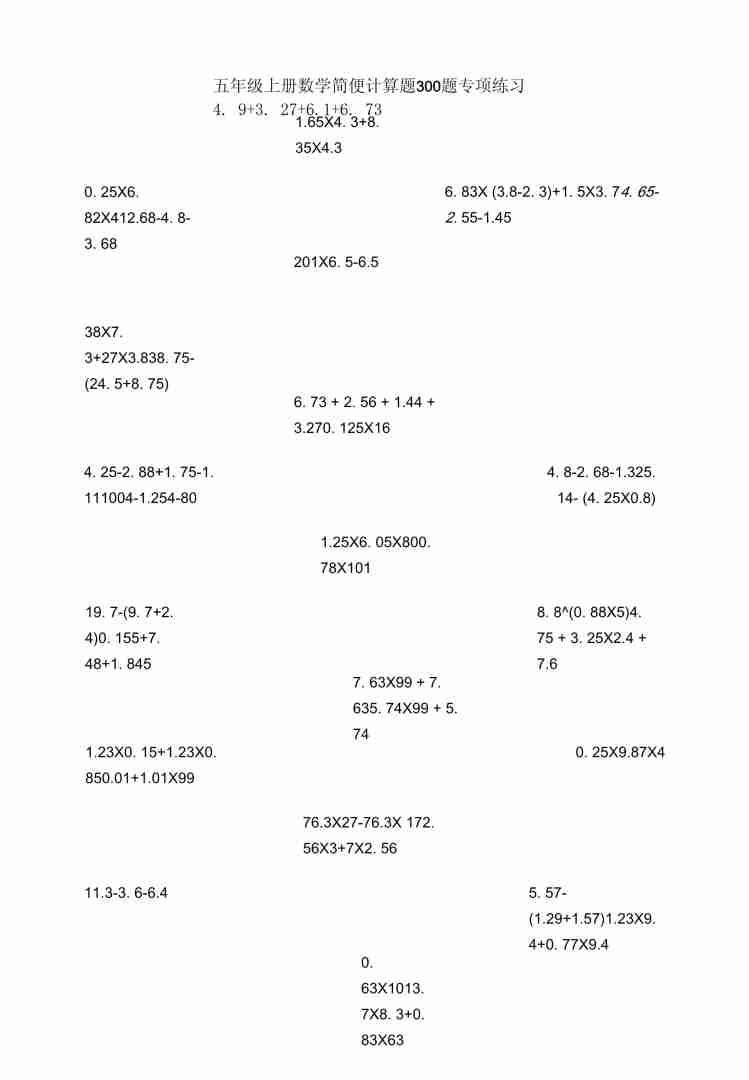 五年级下册数学简便计算题100道要有答案, 在哪里找五年级下册数学简便计算题的答案 一口算下面各题 10265= 09×008= 528349= 6+144= 24÷004= 123423= 0÷38= 077+033= 7÷14= 675+025=72÷8×4=。