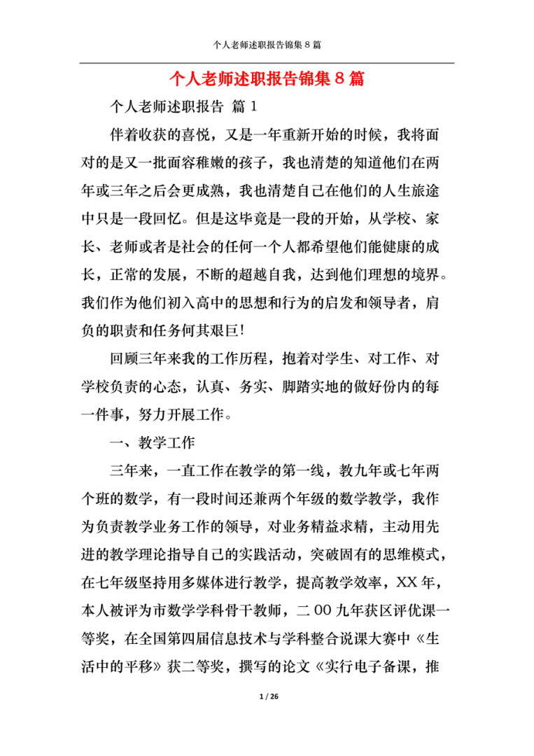 教师述职报告范文1尊敬的校领导时间如流水,从事小学教育教学工作已八年了任职期间,在党的教育方针政策的指引下,在党和领导的关怀教育下,工作积极,勇于探索创新,表现突出,教育教学成绩显著,年度考核称职以上,符合小学数学高级教师的申报条件,现申报小学数学高级教师职务,本人述职报告如下一基本情况本人___;2教学管理认真组织好教师业务学习,围绕有效教学开展15次集中学习,提升教师教学理念开展“同课异构”课堂教学竞赛活动,拉开过程,提高实效启用“有效教学”实施手册,为教师个人学校积累业务资料每学期初制定好学校工作计划并督促实施落实,期末做好学校工作总结三继续教育积极参加培训与学习;我也去答题访问个人页 关注 展开全部 又到了一年的要写 述职 报告 的时候了,那么教师的述职报告应该怎么写呢?伙伴们想要了解吗?一起来关注下吧!下面是我为大家带来的有关教师述职3分钟幽默年终报告5篇,希望大家喜欢! 教师述职3分钟幽默年终报告篇1 尊敬的校领导 你好! 这几年来,在校领导老师;本人现年30岁,19xx年7月毕业于贵州广播电视大学附属中等专业学校中师专业,于XX年九月至XX年七月在民族师范高等专科学校进修汉语言文学教育,同年七月一日获大专毕业在教学教育过程中,一边上课,一边学习,于XX年1月获得x小学教师继续教育第一阶段培训合格证书XX年2月20日获得贵州省小学教师;工作 总结 就是把一个时间段的工作进行一次全面系统的总检查总评价总分析总研究,并分析成绩的不足,从而得出引以为戒的 经验 下面给大家分享一些关于教师个人述职总结,更多教师个人述职总结 范文 点击“ 个人总结 ”查看 教师个人述职总结简短1 人生倏忽兮如白驹之过隙,本学期,我担任高一11的数学,我。
